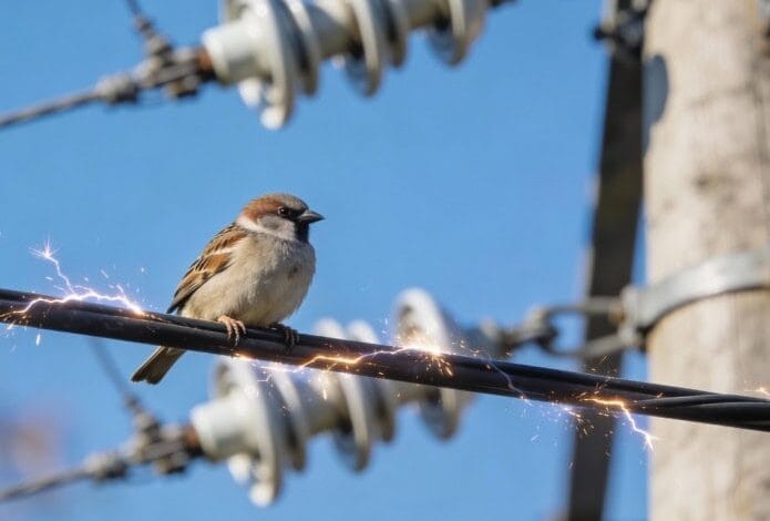 | 🛤️ Circuito Aberto | Para haver choque, a corrente precisa atravessar o corpo em direção a outro potencial (como o chão); como a ave toca apenas um ponto, o circuito não fecha. |